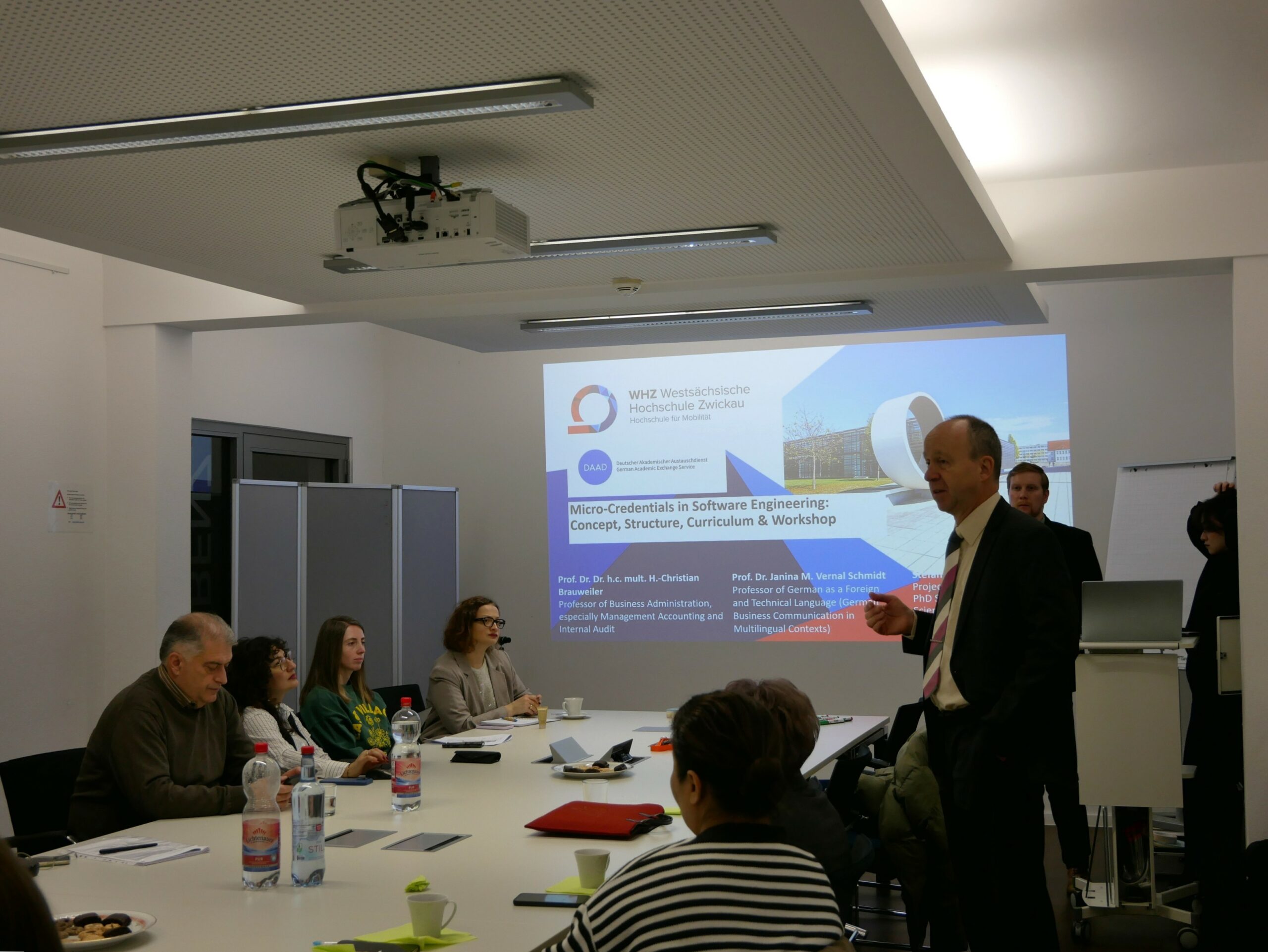 During the visit, a roundtable discussion was held with WHZ Rector, Professor Stephan Kassel, along with representatives from partner countries: Czech Republic, Ukraine, Albania, and Azerbaijan. Meetings were also conducted with partners of the new E-CANDEE project.