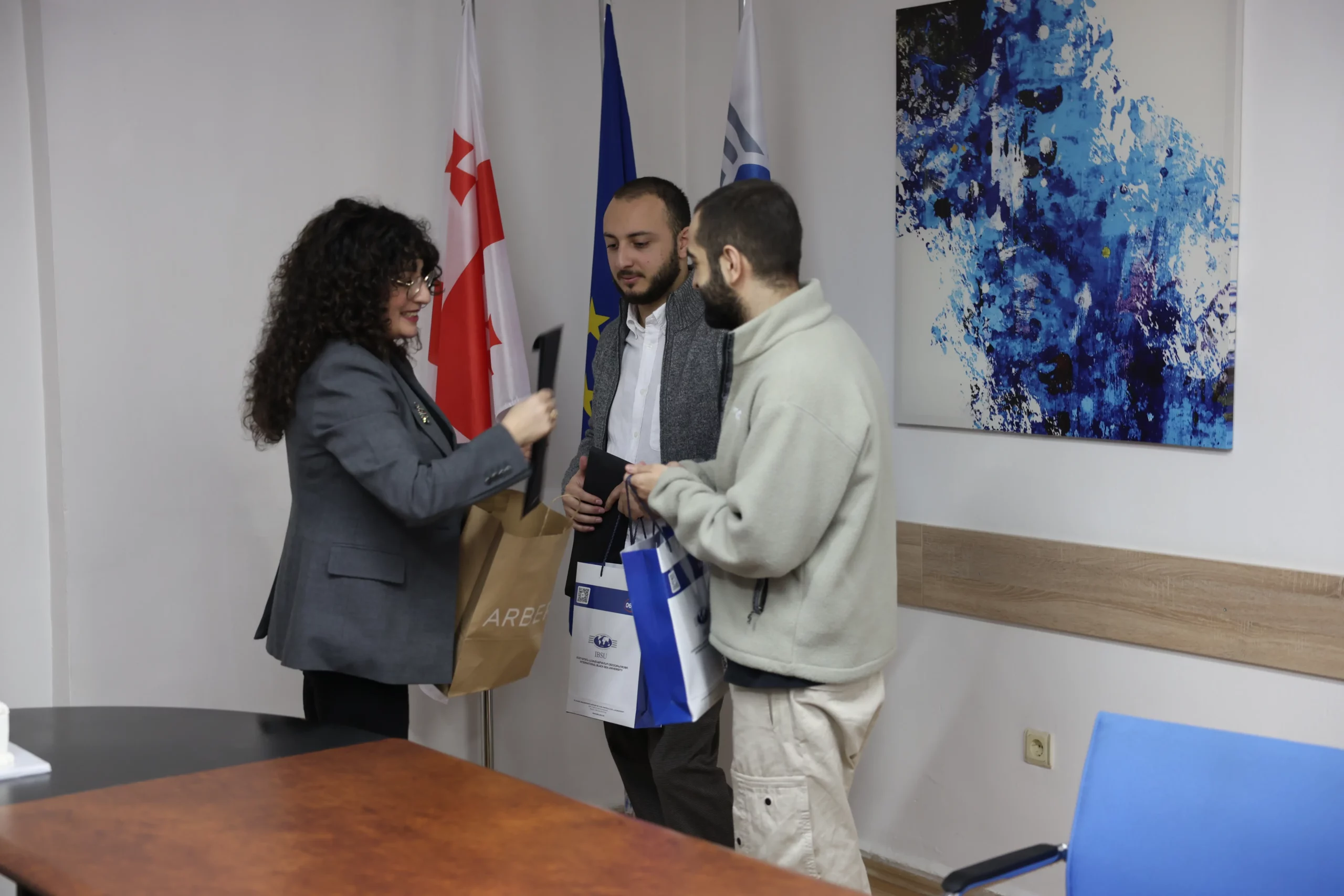Following the defenses, the event continued in a ceremonial format for the graduates. The Rector of the University, Professor Gia Kavtelishvili, along with Vice-Rectors and invited guests, congratulated the students on the successful completion of the program and the achievement of receiving two diplomas — from the International Black Sea University and the West Saxon University of Applied Sciences Zwickau.