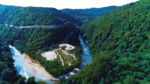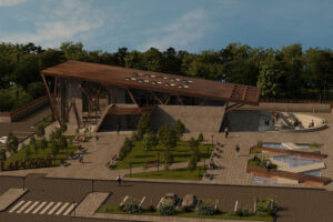 Tiko Gogia’s project “Archeopolis”, located 20 km from Senaki on the right bank of the Tekhura River — at the site of the ancient Greek city Archeopolis — contributes to the development of the area’s tourism potential. Surrounded by greenery, sulfur hot springs, a geyser, and a waterfall, the project envisions a wellness and hotel complex with fluid, wave-like geometry. It was selected among the top three projects in the Hotel Architecture category.